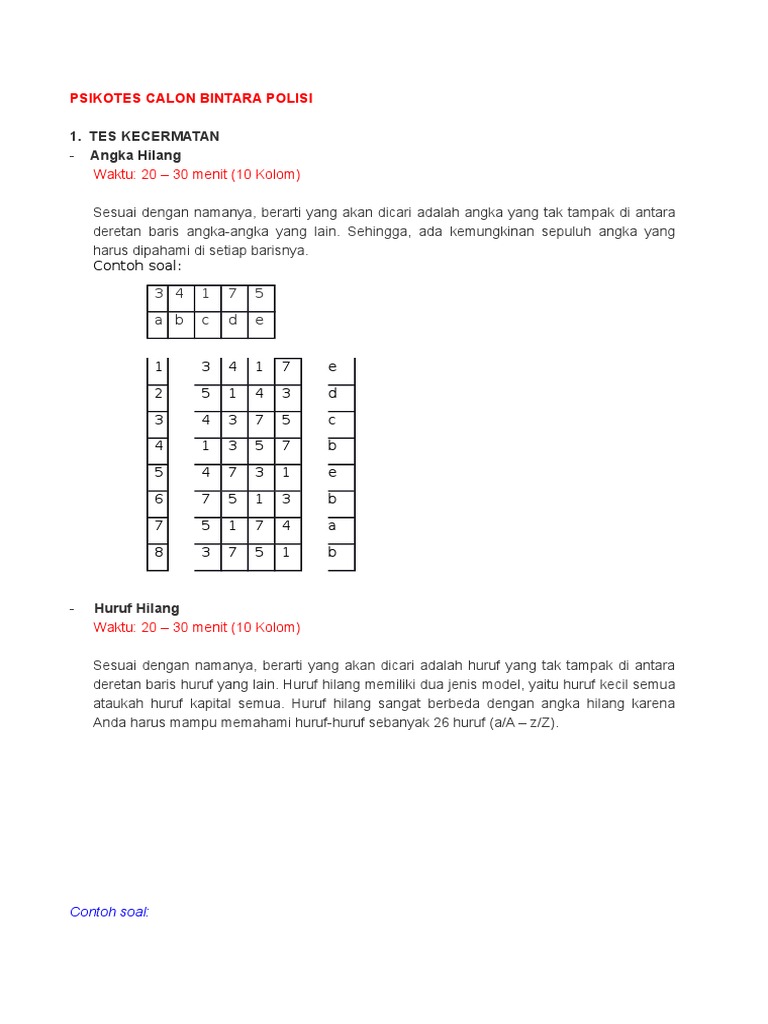 Contoh Soal Psikotes Calon Bintara Polri Otosection